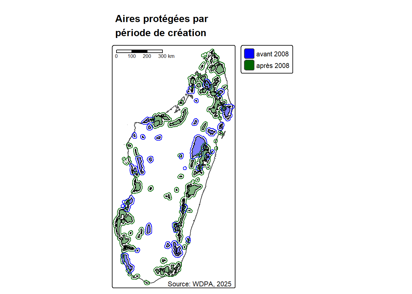 Afin de disposer de données actualisées sur les aires protégées, nous avons triangulé les données relatives aux aires protégées avec d’autres sources notamment celles du Service de la Gouvernance des Aires Protégées (SGAP) du Ministère de l’Environnement et de Développement Durable de Madagascar (MEDD)“, les décrets officiels et la documentation des gestionnaires des aires protégées. Les données de World Database on Protected Areas (WDPA) restent néanmoins la plus complète.