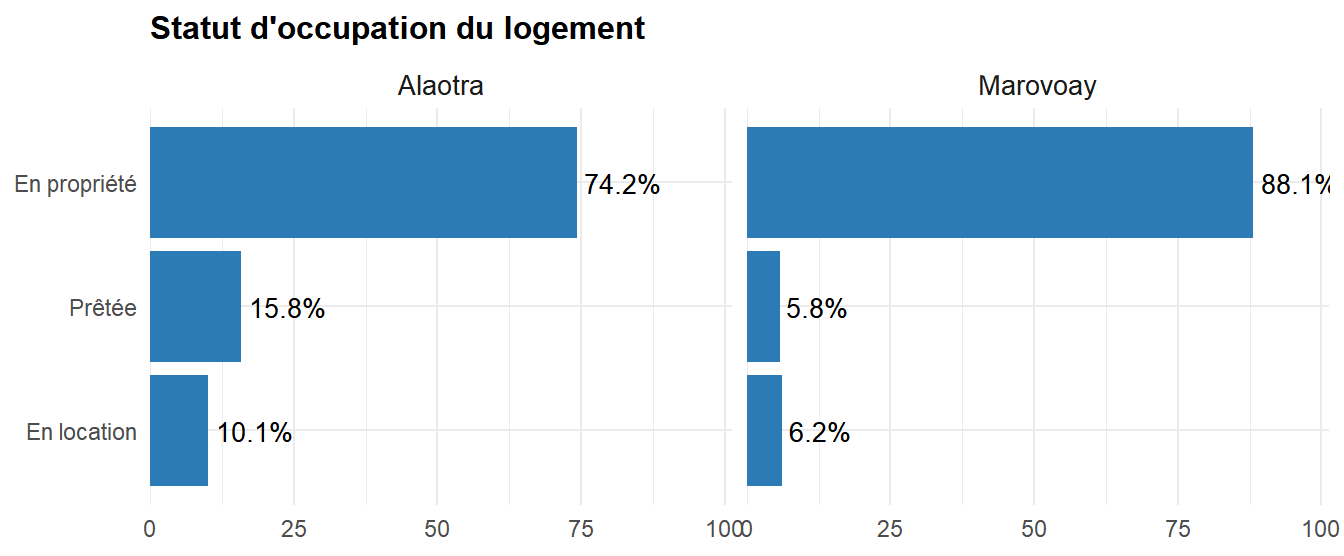 Dans l’Alaotra, 74.2 % des ménages occupent un logement en « En propriété ».