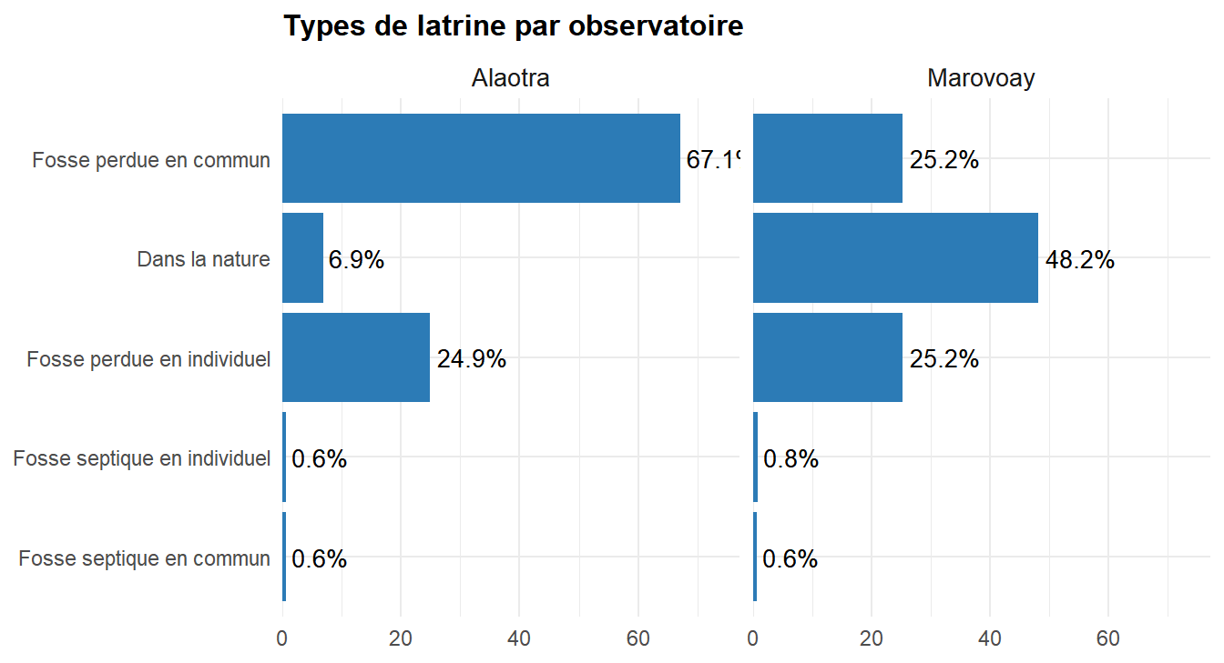 Dans l’Alaotra, Le type dominant est « Fosse perdue en commun » (67.1 % des ménages).