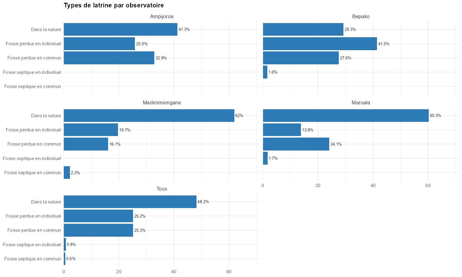 latrine |> make_bar_obs(title = obs_title("Types de latrine"))